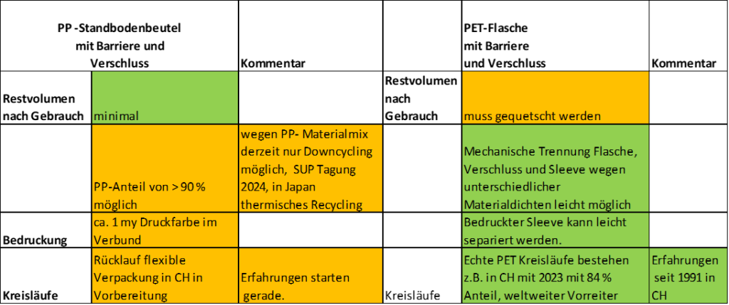 5.4. Fazit von PP-Standbodenbeutel und PET-Flasche im Vergleich