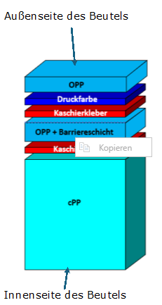 Bild 1.1: Verbundfolienaufbau für PP Standbodenbeutel mit keramischer Barriere